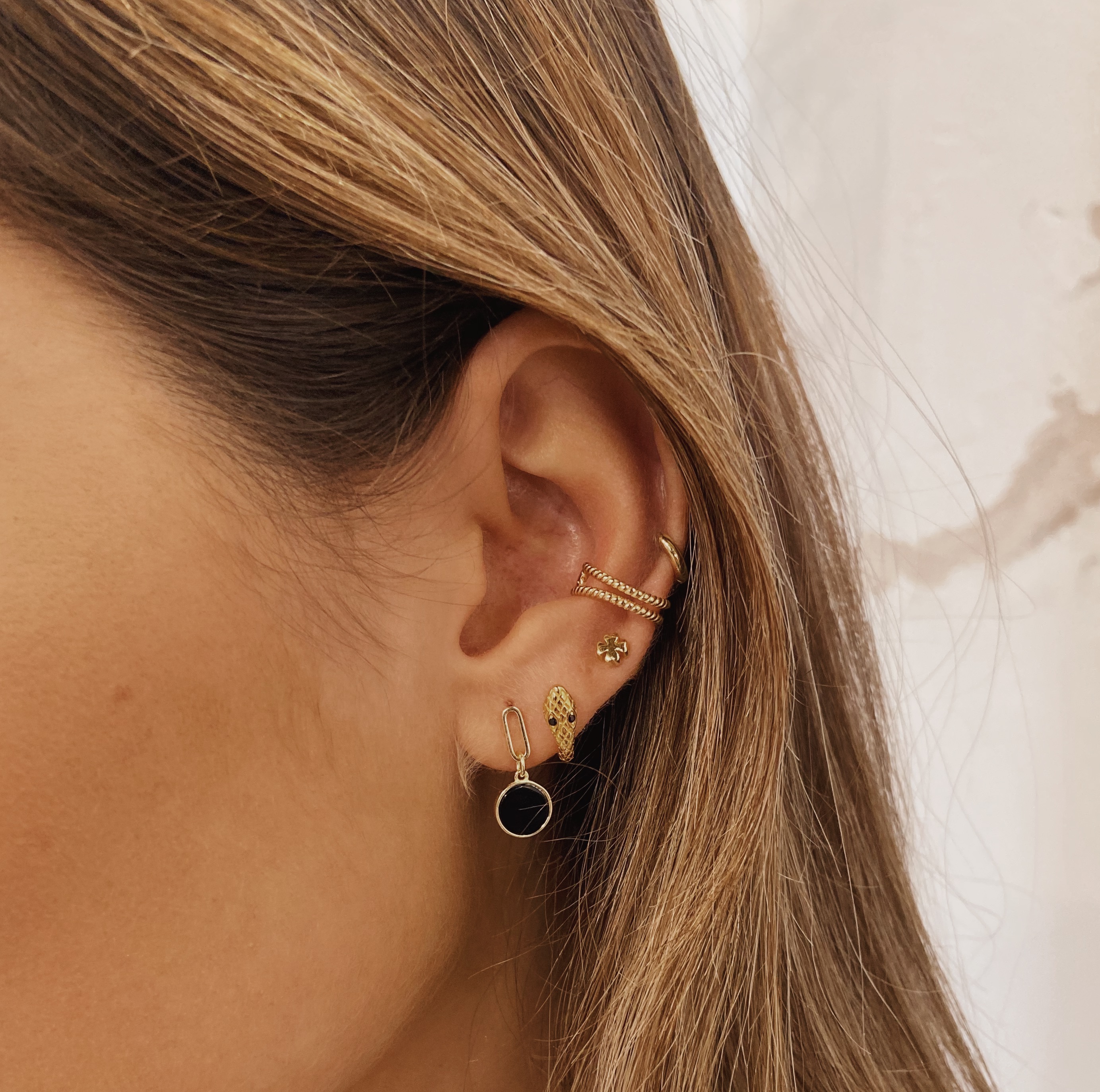 Pendiente de plata 925 o plata 925 chapada en oro de 18k y dos circonitas negras