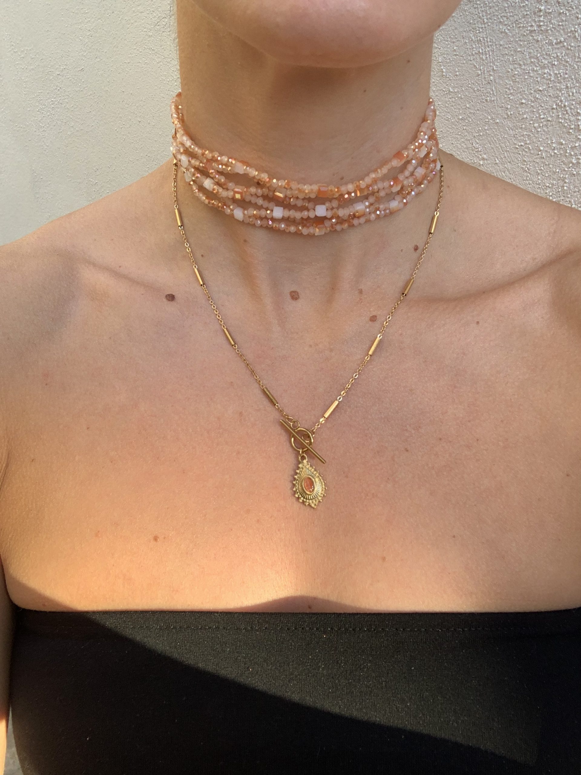 Choker de acero inoxidable y cuentas de colores
