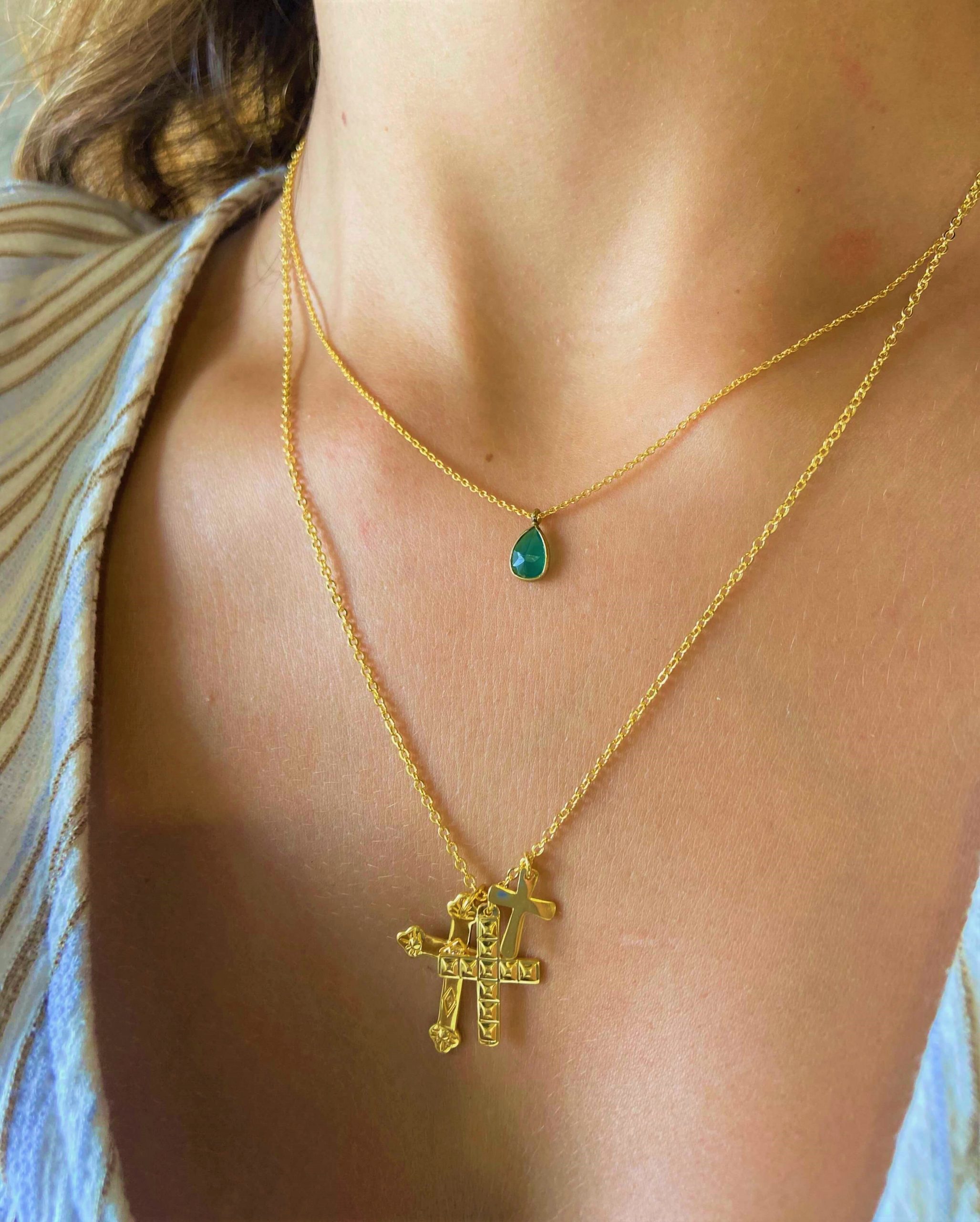 El colgante tres cruces es uno de nuestros best sellers y es ideal para hacer un uso diario de él, ya que, su sencillez y elegancia te permite poder usarlo para todo tipo de ocasión.